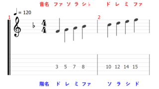 最初の音は「ファ」ですが、「ドレミファソラシド」と同じ関係を保って7つの音が並んでいます。